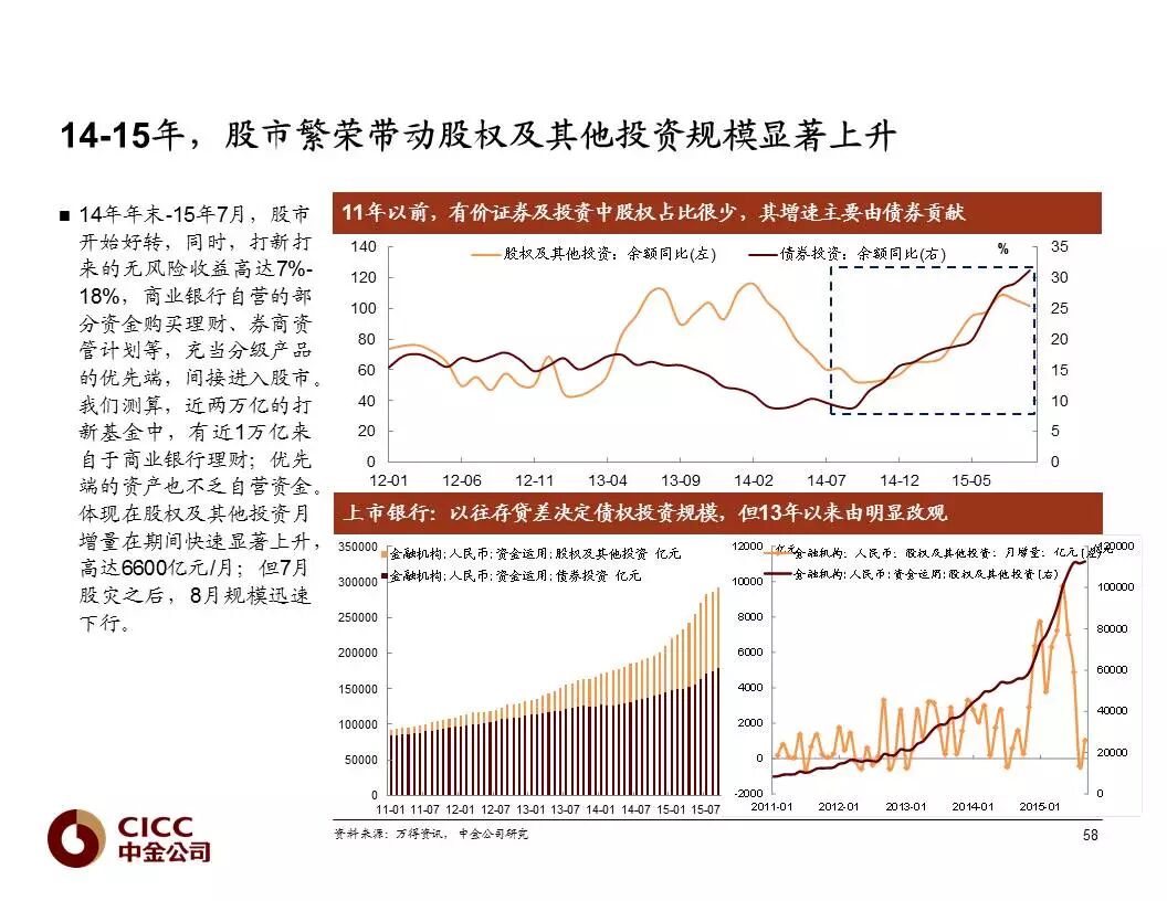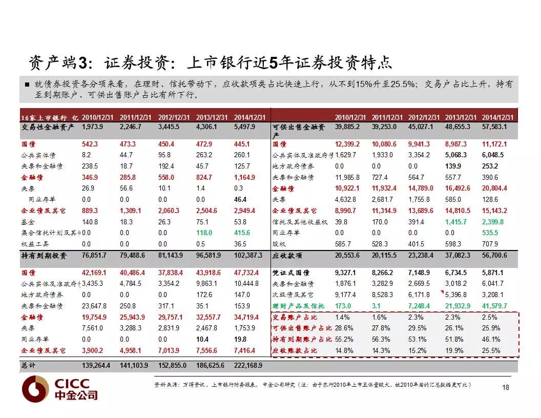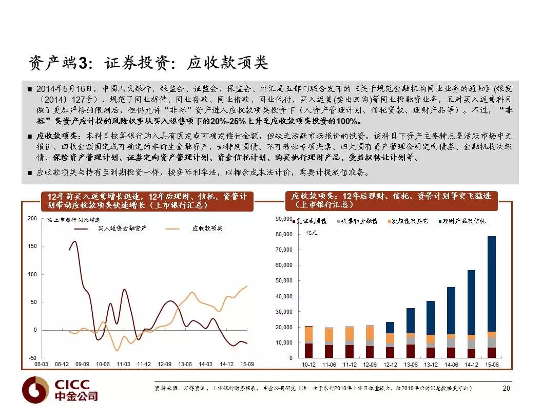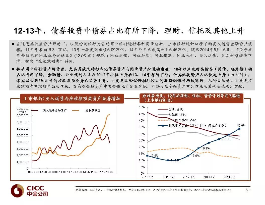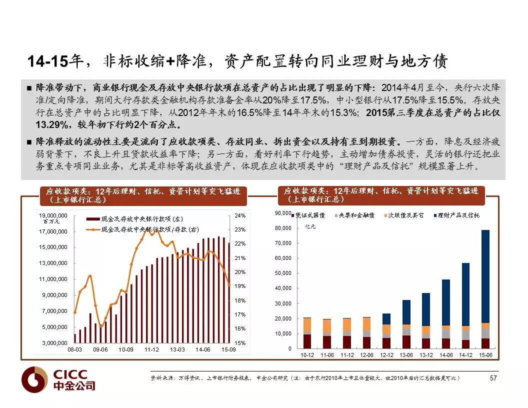 ü14-15年,监管层非标收缩,地方债务置换推出,股市与打新在14年年末开始火爆,商业银行资产配置转向应收款项类与地方债,背后的资产实为理财、信托、资管计划等。