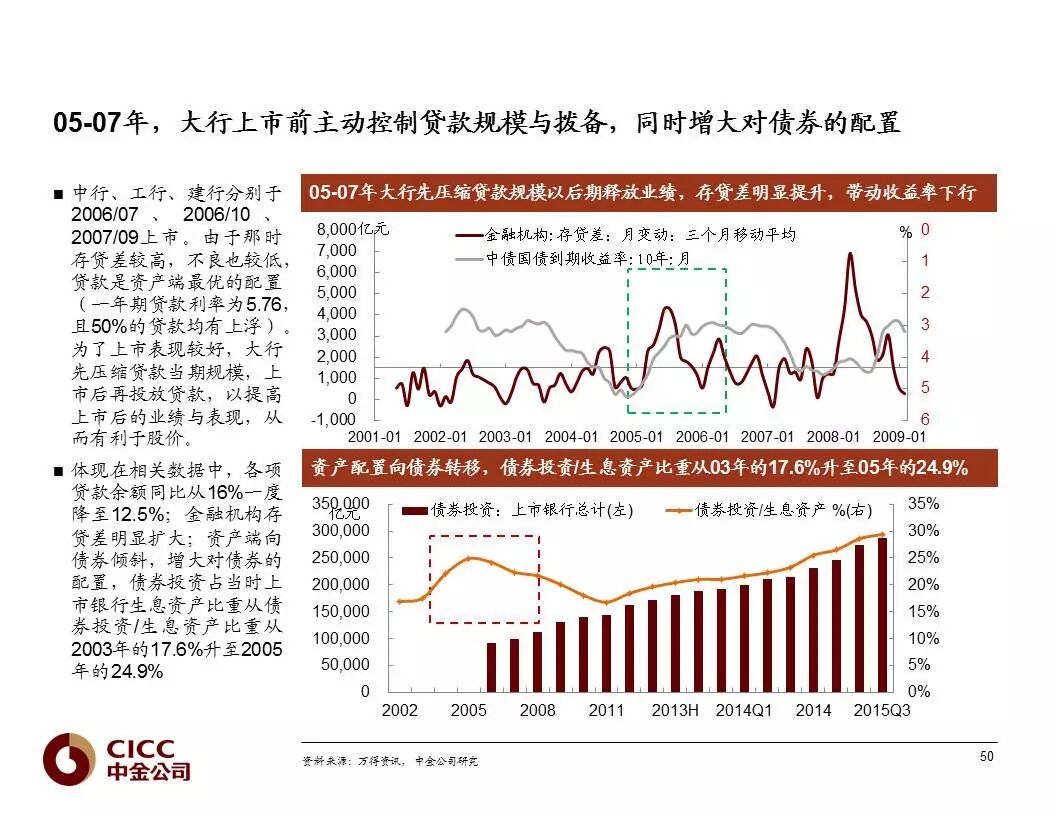 ü05-07年,大行上市前主动控制贷款规模与拨备,同时增大对债券的配置;