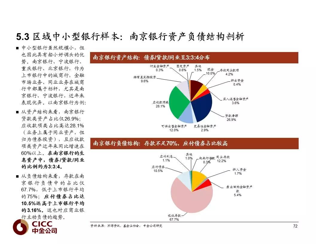 ü负债端:以存款、同业负债、应付债券、向央行借款为主,占比为:75%、17.4%、2.8%、0.64%。