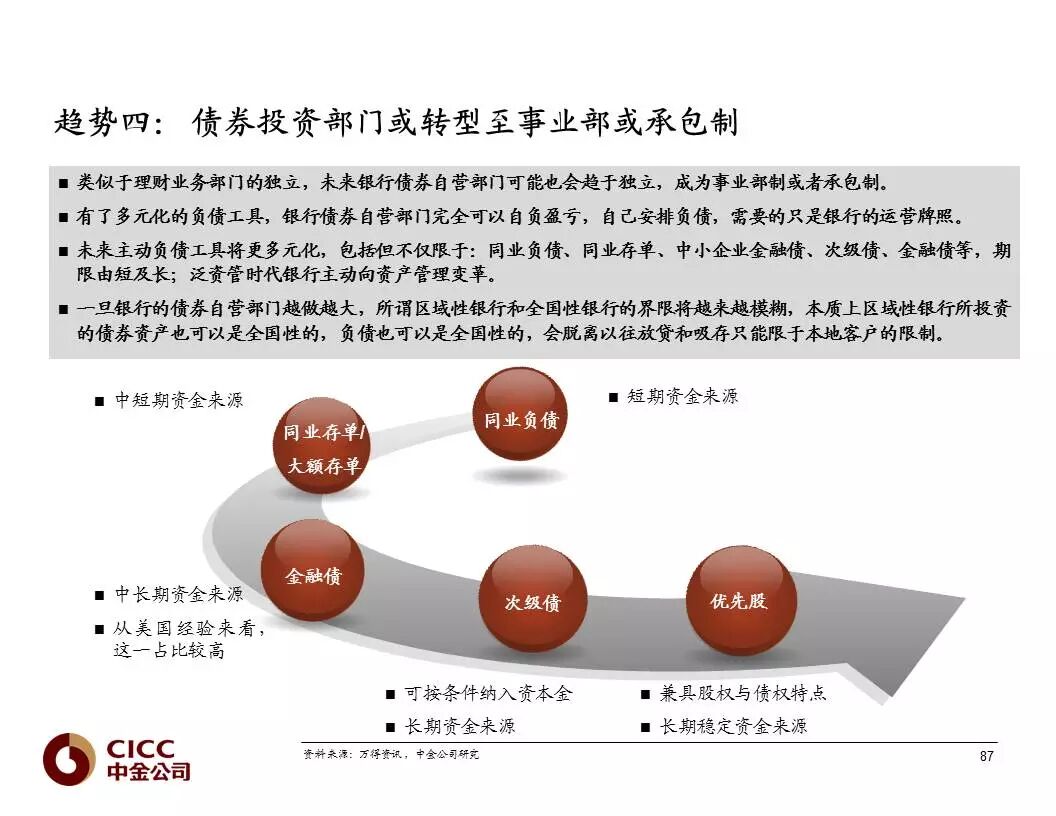 ü资产负债结构差异背景下,商业银行差异化经营,同业与债券在资产端占比提升;债券投资部门或以事业部形式独立;更丰富更多运用主动负债工具,更大程度转型至主动负债管理。