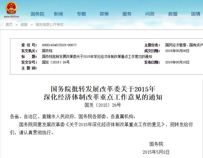 意见指出2015年深化深化经济体制改革的重点工作包括制定完善金融市场体系实施方案,出台促进互联网金融健康发展的指导意见。制定推进普惠金融发展规划。