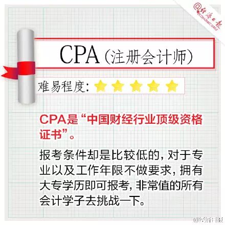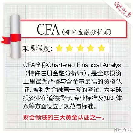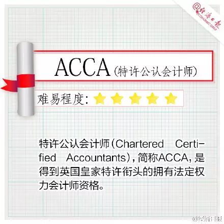 国内的会计考证证书:会计从业资格证书、注册会计师资格证书; 国际上财会领域三大黄金证书:CMA、AICPA、CFA;还有拥有英国皇家特许头衔的ACCA…… 快来get吧! 来源:经济日报法人微博