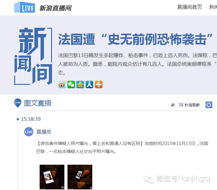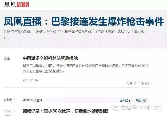 对于此次恐怖袭击,腾讯、新浪、搜狐、网易、凤凰等几大门户网站也都第一时间开通了网上直播,及时讯速地将事故动态传递出去。