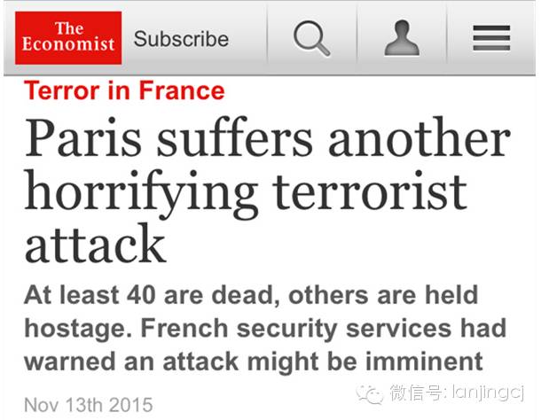 英国《经济学人》:巴黎再度遭遇吓人的袭击。至少40人死亡,其他人被挟持为人质。法国安全部门此前曾警告可能近期出现袭击。