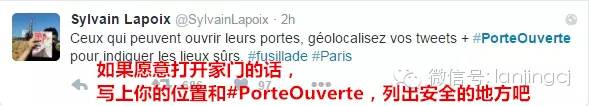 据微信公众号歪楼消息:事件发生不久后,巴黎人在Twitter上发起了一场#porteouverte(开门)运动,呼吁人们对滞留在街头、惊魂未定的陌生人打开家门。