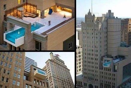 被改造成酒店的不只德累斯顿银行总部大楼一家,还有曾经的达拉斯国家银行大楼,现在的Joule Hotel,这家酒店更任性,因为它的游泳池是这样的!