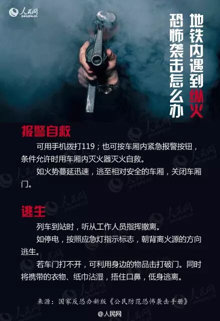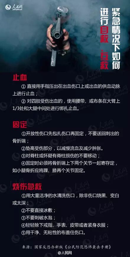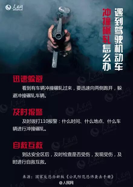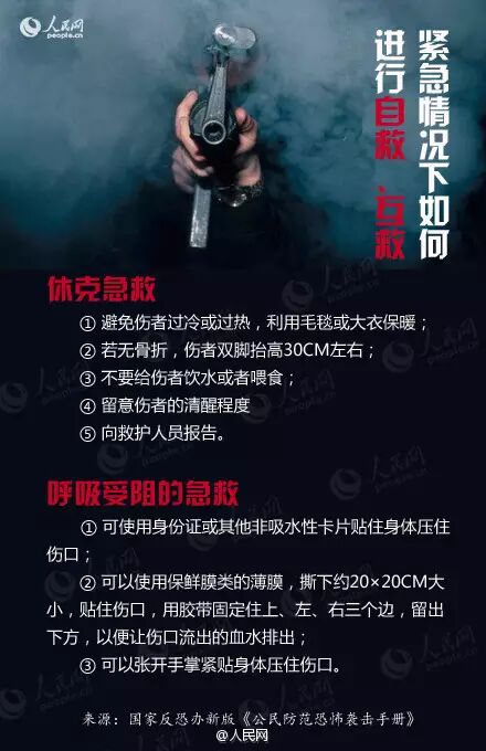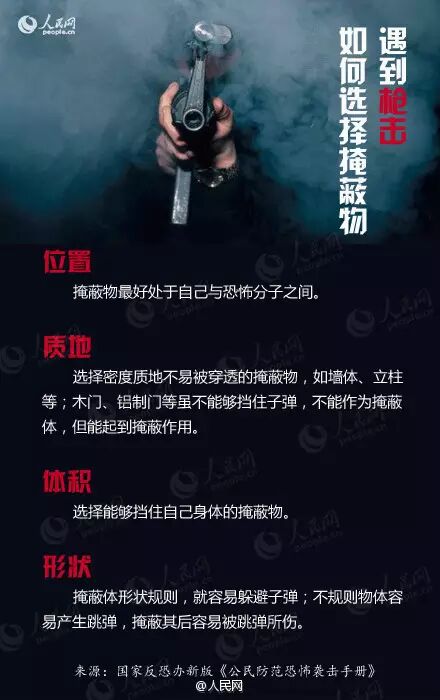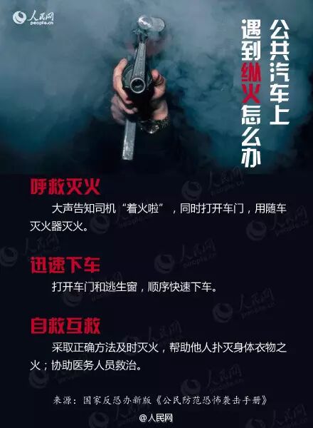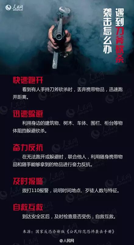我们呼吁和平,反对恐怖和暴力,但这些反恐常识你必须了解:怎样识别可疑人物和爆炸物?遇到刀斧砍杀袭击如何躲避?公共汽车上遇到纵火恐怖袭击怎么逃生?遇到枪击如何选掩蔽物?......戳图学习↓↓ 为生命安全,扩散!