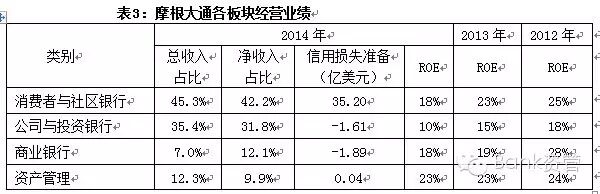 2014年资产管理模板业务的收入和净收入分别占全行的12.3%、9.9%。从2012年到2014年三年的ROE来看,资产管理板块的ROE水平最为稳定,在2014年还是ROE最高的业务板块。