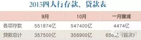 图:2015年9、10月四大行存款贷款金额全面骤降