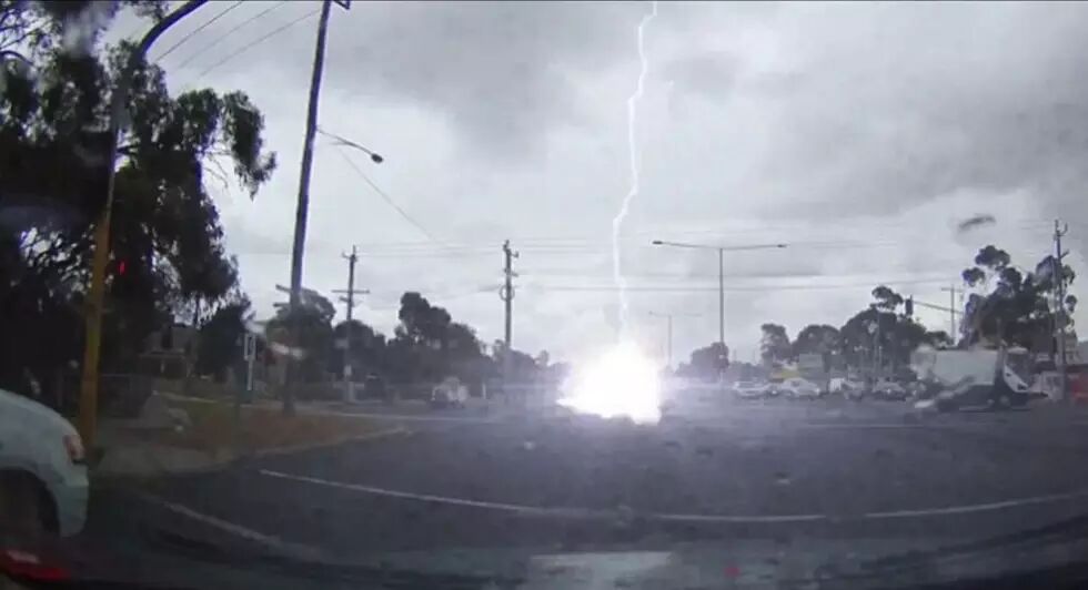 当一辆汽车驶过墨尔本繁忙的十字路口时,突然间被一道闪电击中尾部,随后闪电似乎穿过汽车后击中路面,在混凝土地面上击出大坑,冒出黑烟,混凝土碎块飞入空中。闪电消失后,轰鸣的雷声随之而来。整个过程不到一秒的时间。