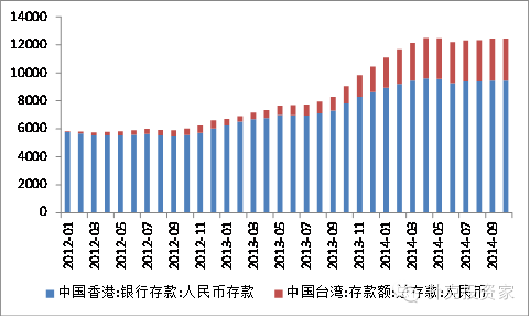 图8香港台湾人民币存款单位:亿元