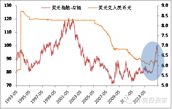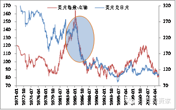 人民币国际化进程处在美元上升周期,对国内经济冲击会相对较小。1985年9月,签订广场协议后,日本政府允许日元对美元急剧升值,极力推动日元国际化。同期美元指数却处在下降周期,对日本出口商产生很大冲击,导致日本经济增长从1985年的5.1%,下降到1986年的3%。