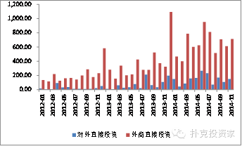 对外直接投资有望超过外商直接投资。2014年非金融类对外直接投资额为1029亿美元,同期,对外直接投资额为1195亿美元。