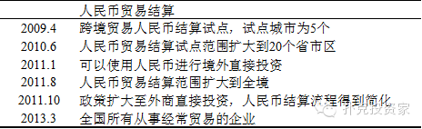表1人民币贸易结算主要事件