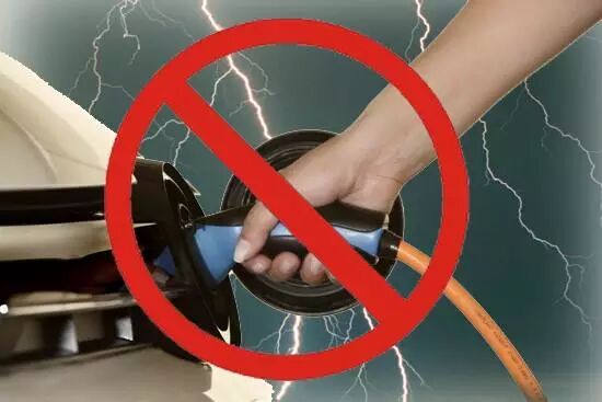 在雷雨天气状态下加油,加油枪极易将杂散电流导入汽车油箱,从而造成不稳定汽油的分子运动加剧,从而引发火灾、爆炸等安全隐患。