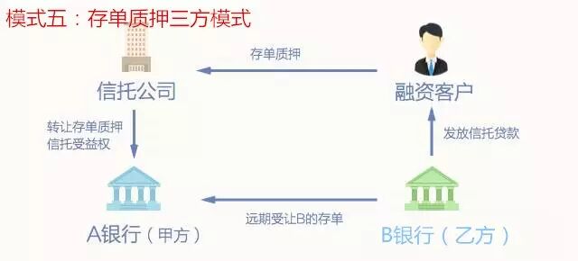 融资客户拿到存单,在信托公司作存单质押贷款,然后A银行实际出资受让这笔存单的信托受益权,并且B银行远期受让由A银行持有的在自己银行的存单。