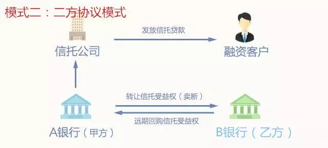 但有一个问题是,这类股份制银行一般都只能接受严格意义上的买入返售业务,也就是必须签订三方协议(股份制银行作为三方协议中的乙方,即实际出资方),而不能采用模式一的暗保形式操作。