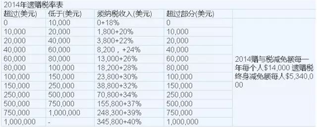 而遗产税也是另外一个需要注意的问题,在美国2014年超过遗产税减免额(目前是534万美金)以上的资产要支付最高40%的遗产税。