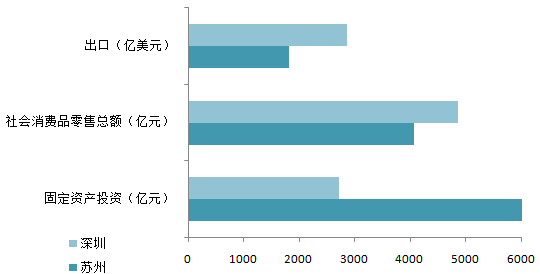 图3:2014年苏州与深圳“三驾马车”对比(数据来源:国家统计局)