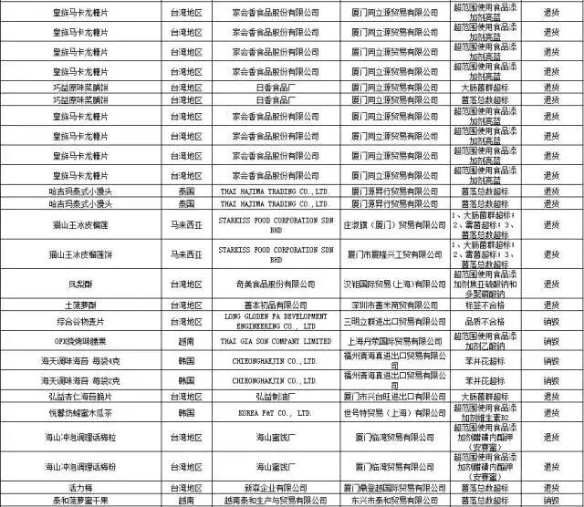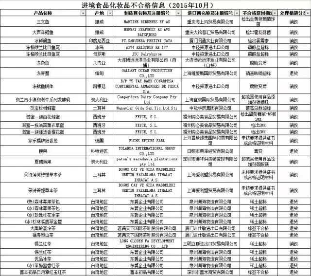 此次公布的不合格信息中,所列批次食品、化妆品的问题是入境口岸检验检疫机构实施检验检疫时发现的,都已依法作退货、销毁或改作他用处理;这些不合格批次的食品、化妆品未在国内市场销售。