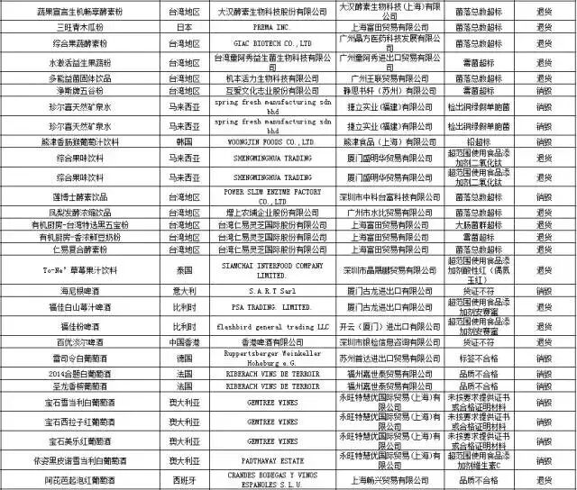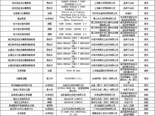 在不合格名单中,共有25批酒类产品。包括产地为“德国”的3批百卡迪冰瑞预调酒,被检出超范围使用食品添加剂苯甲酸钾;产地为“比利时”的1批福佳粉啤酒,被检出超范围使用食品添加剂安赛蜜;产地为“西班牙”的3批阿芘芭起泡红葡萄酒,被检出品质不合格;产地为“意大利”的1批海尼根啤酒,被检出货证不符。