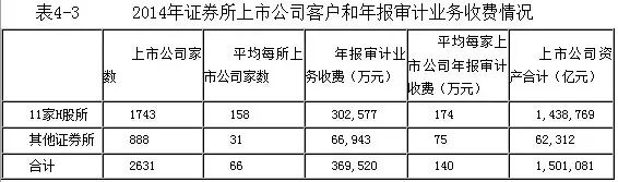 截至2015年7月,沪深两市共有2631家A股上市公司披露了2014年度的财务报表审计报告,有关数据如表4-3所示。