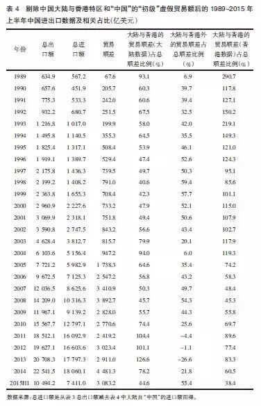 如上大陆与香港“初级”虚假贸易和大陆与香港外的其他国家和地区的“初级”虚假贸易额加上估算出的虚假贸易额,即为大陆与香港和大陆与香港外的国家和地区总的虚假贸易额。