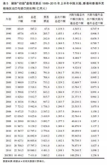 基于1989~2015年上半年中国大陆公布的与香港的贸易数据和香港公布的与大陆的贸易数据,本文发现“大陆对香港的出口”与“香港从大陆的进口”及“大陆从香港的进口”与“香港对大陆的出口”这些本来应该是相同或相近的数据却存在着巨大的差异。这些差异揭示20多年来大陆与香港间贸易存在的严重问题:2005年前人民币跨境资金通过压低出口和抬高进口撤离中国,2005年后通过抬高出口和压低进口的方式流入中国。剔除大陆与香港和大陆与“中国”的“初级”虚假贸易后,大陆与香港的贸易顺差占大陆总顺差绝大多数年份的比例才回到了0到100%较为合理的范围内,印证了剔除这些“初级”虚假贸易的合理性;剔除2011~2015年上半年虚假人民币跨境贸易结算数据后,2011~2015年上半年大陆与香港的贸易顺差占大陆总顺差的比例也回到了0到100%的合理范围,印证了近年来虚假人民币跨境贸易结算的问题。
