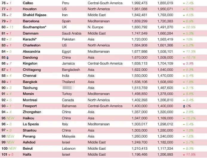 全球100大集装箱港口排名出炉 中国24港口上榜