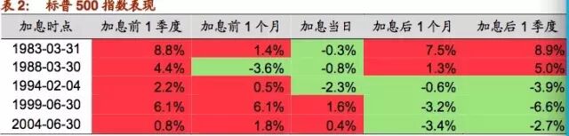 根据招商宏观此前的报告,历史数据显示,在美联储加息前夕,美国三大股指基本仍处于上涨之中——83年和88年两轮首次加息均未改变股市的上涨,这可能与当时美国经济的高增速有关。