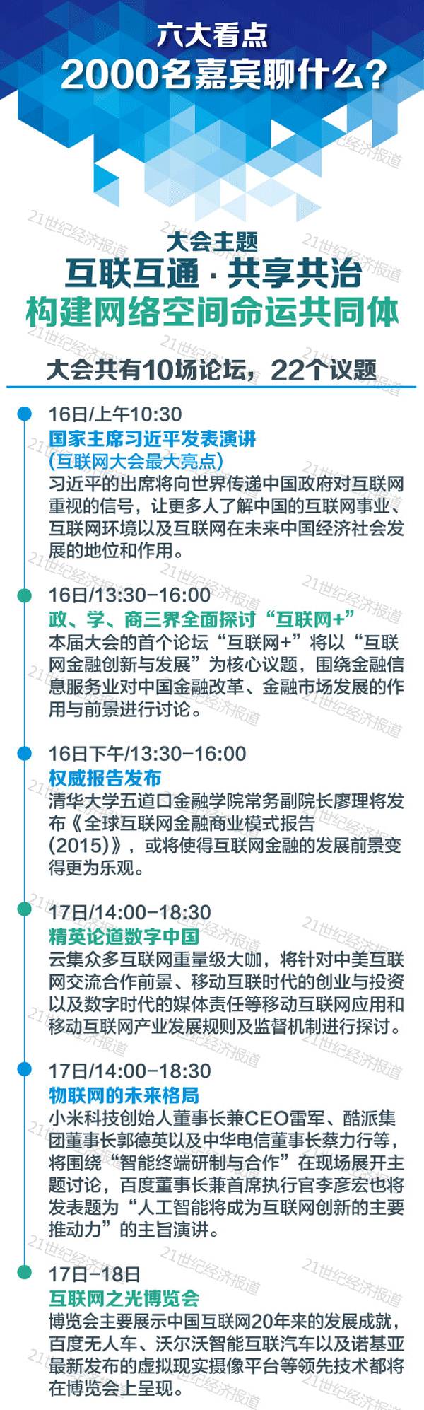 互联网大会丨2000名大咖将聊些啥?图解中国互联网巨变 2015-12-17 11:53 843 12月16日,第二届世界互联网大会开幕了!这是中国主办的规模最大规格最高的国际会议,有来自全球120多个国家的2000多位嘉宾。那么,嘉宾都将聊些什 12月16日,第二届世界互联网大会开幕了!这是中国主办的规模最大规格最高的国际会议,有来自全球120多个国家的2000多位嘉宾。那么,嘉宾都将聊些什么,你对中国互联网又知道多少?且看下图详细解读。哪些大咖将出席?2000名嘉宾聊什么?中国互联网你知道多少? 0 标签: 互联网 中国 继续看全文