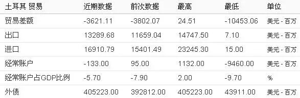 土耳其长期以来国际贸易中处于逆差一方,导致外债越来越多;2014年,土耳其的GDP规模为7995.4亿美元,截至2015年9月的外储规模为1422.57亿美元。该国的外债规模相当于去年GDP的50%,是外汇储备的2.85倍。一旦外资大规模撤离,土耳其薄弱的偿债能力极具引发风险。