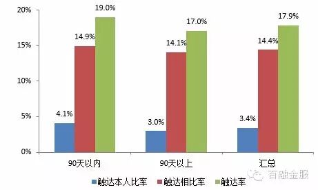 从逾期账龄区分,逾期90天以内客户和逾期90天以上客户触达情况没有显著差异,低账龄客户的修复比例略高。