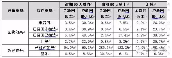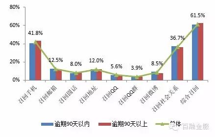 从客户逾期账龄情况进行区分,逾期90天以内客户和逾期90天以上客户召回情况没有显著差异。其中,在手机召回方式下,逾期90天以上客户的手机召回率还略高于90天以内逾期的客户。