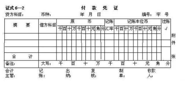 系专供办理现金、银行存款(包括支票、汇票等票据)支付事项使用的记账凭证,其内容、格式如证式6—2,并按白纸兰字(线条)印刷,以符传统会计惯例。在会计实务中,