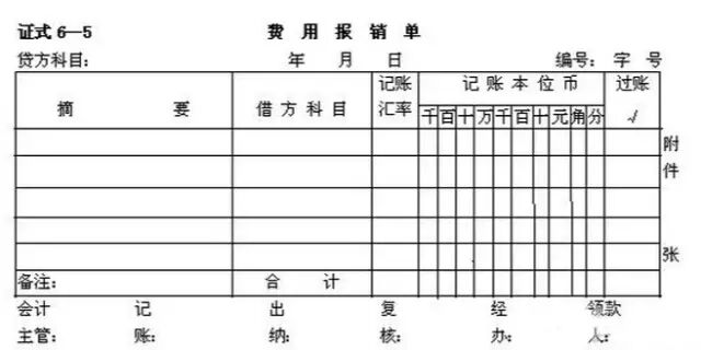 系供除旅差费以外的其他各种费用报销专用,其内容格式如证式6—5,并按白纸兰字(线条)印刷。根据实际发生费用、耗费支出的原始凭证,依费用性质,分别按其明细目(参见会计科目表或科目内容说明)予以汇总填入借方科目及同行金额栏;其对应贷方科目,填于凭证的左上方,一如“付款凭证”的情况同,合计金额数即为贷方科目的金额。本凭证既是内部原始凭证,又是记账凭证,兼代付款或转账凭证。