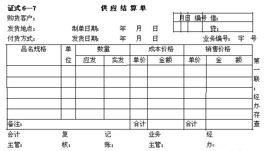 1、第一联:“供应结算单”由经办留存备查;然后将二至六联交买主,持以到财务部门办理付款提货手续。如采用先提货后付款的销售结算方式,买主即可持以向发货仓库办理提货(或委托代办送货及托收承付结算)手续。
