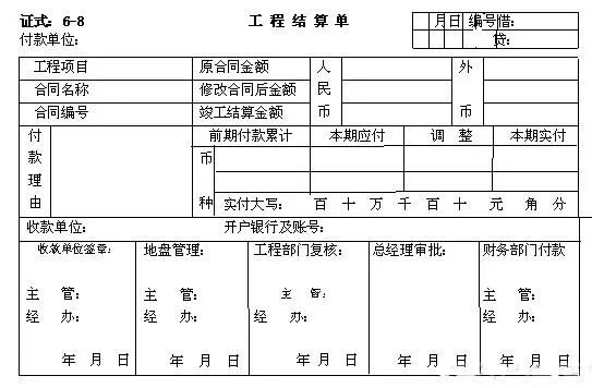 1、第一联,工程付款结算单:经地盘监理、工程部门经办、主管审核,及总经理(或经授权之总工程师)审批后,由经办留存备查;