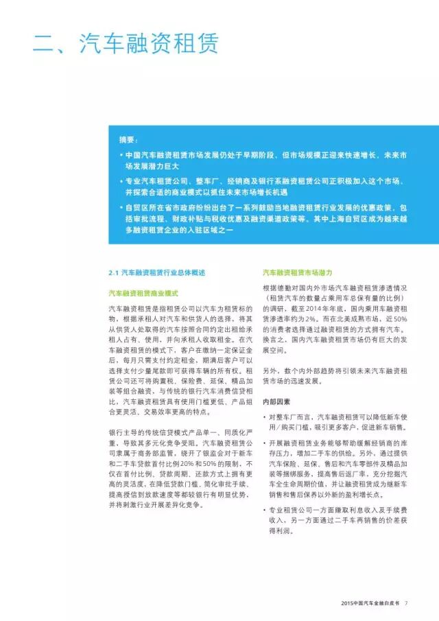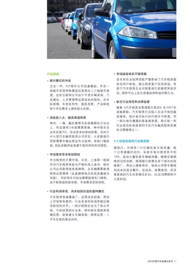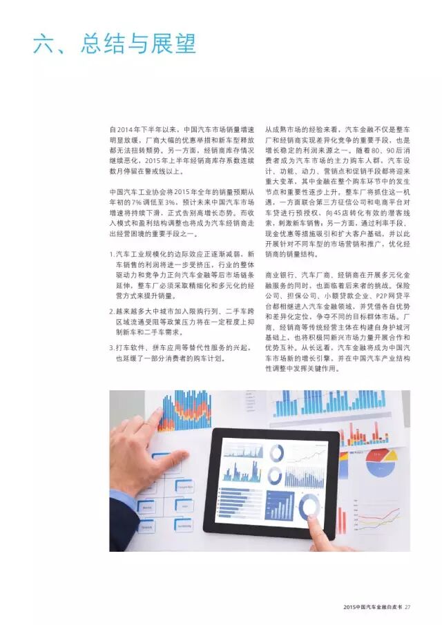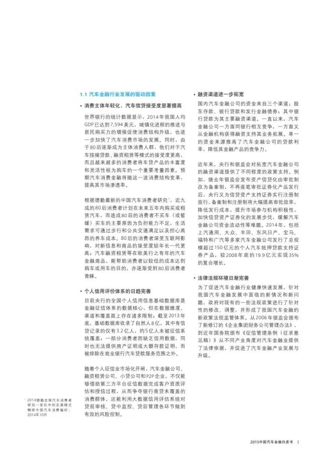 《2015中国汽车金融白皮书》深入地研究汽车金融服务行业的创新,探索几大主要新兴模式在中国的发展,近距离观察汽车金融行业的主要参与者及商业