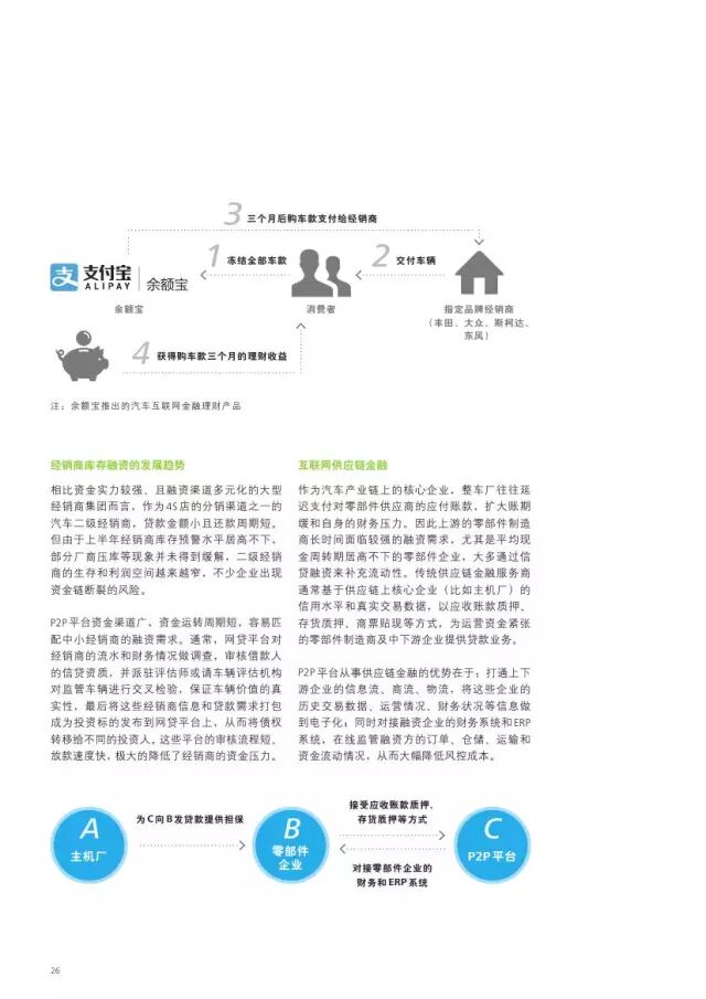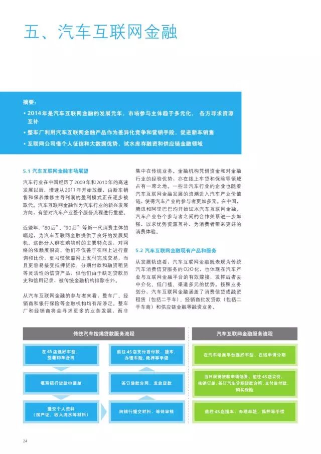 2014年是汽车互联网金融的发展元年,整车厂利用汽车互联网金融产品作为差异化竞争和营销手段,促进新车销售;互联网公司借助个人征信和大数据优势,试水库存融资和供应链金融领域。汽车互联网金融作为汽车行业的新兴发展方向,有望对汽车产业整个服务流程进行重塑。