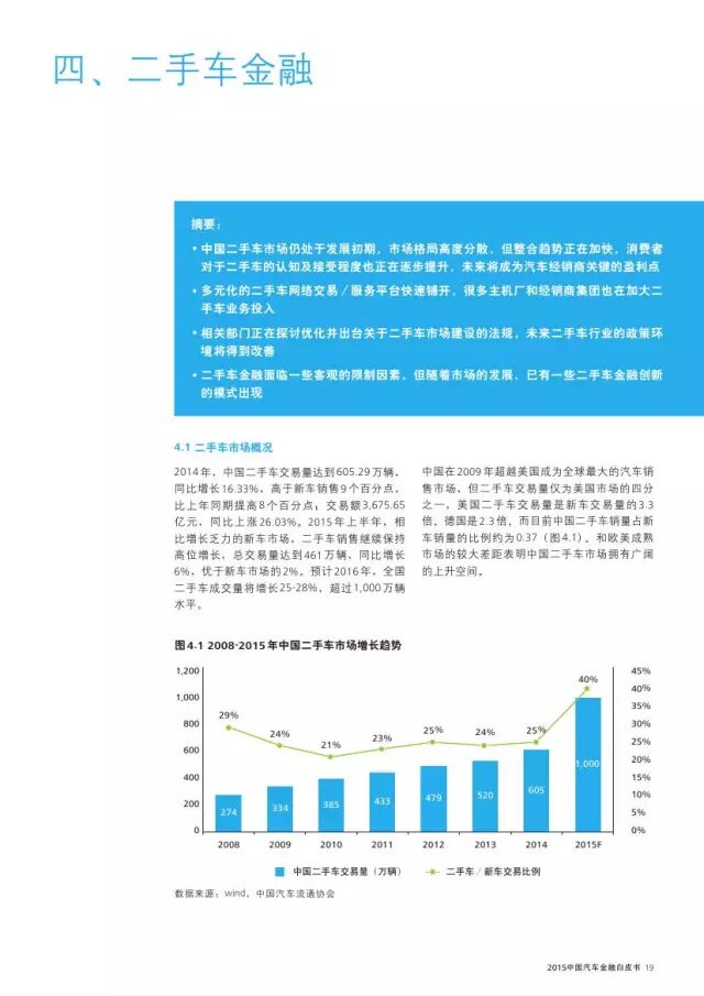 作为全球最大的新车市场,中国的汽车后市场规模及成熟度上均较成熟市场有较大差距。根据成熟市场的发展轨迹,随着汽车产销市场和流通体制的逐渐成熟,汽车金融将会发挥越来越重要的作用。以下总结了文中的主要观点和发现: