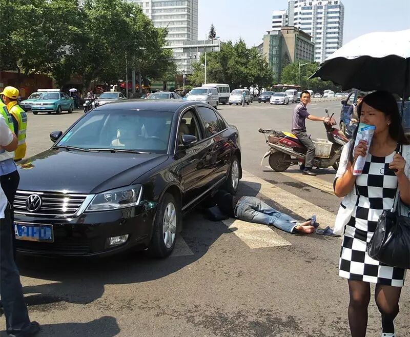 12月9日中午,湖北某医院工作的李女士约了朋友吃饭。因医院门口是条单向仅一车道的马路,她开得不超过20码。没一会儿,一位身穿大红色衣服的大妈在离车还有七八米远的距离,像慢动作回放般,慢条斯理地趴下了!李女士赶紧刹车,在离大妈五六米处停下。