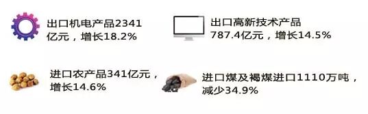 主要商品中,机电、高新和劳动密集型产品出口均保持良好增长势头,机电、高新技术产品进口降幅继续收窄,农产品进口逆势增长,钻石及主要资源能源产品进口降幅较大。