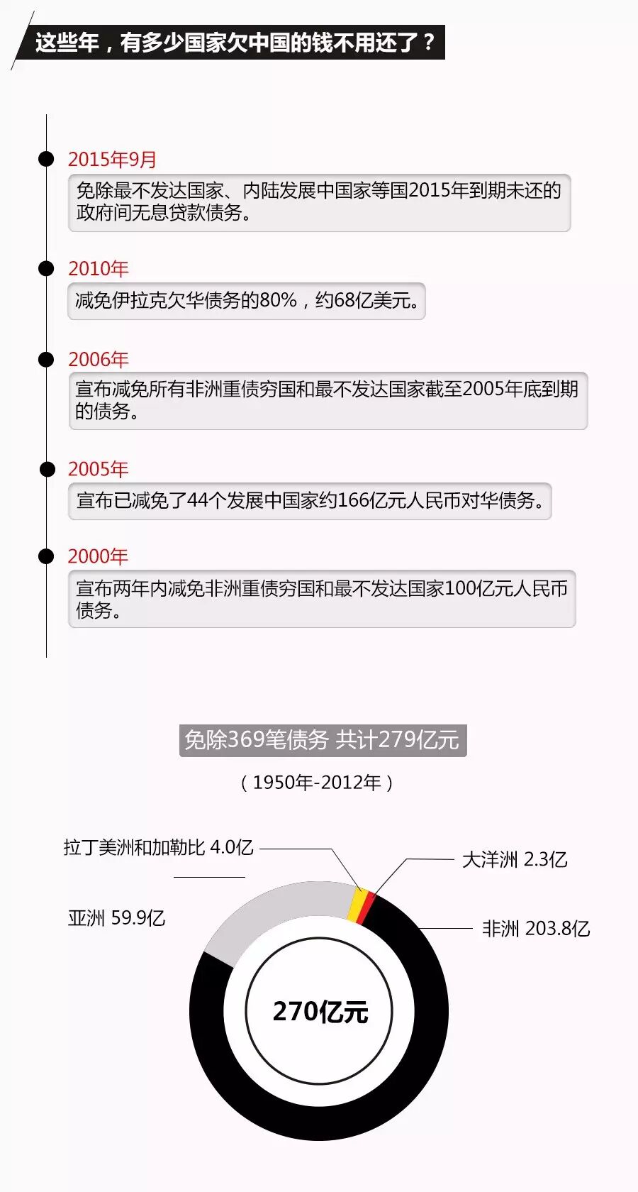 导语 2015年12月23日,中国免除津巴布韦今年到期的债务2.6亿元人民币。国务院数据显示:中国3年对外援助金额约达900亿。中国近亿贫困人口为何还要对外援助?该不该给穷国免债?一起翻开中国免除外债的经济账本。