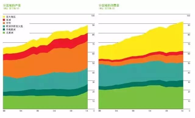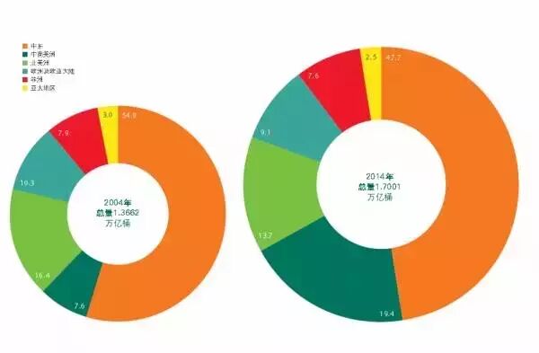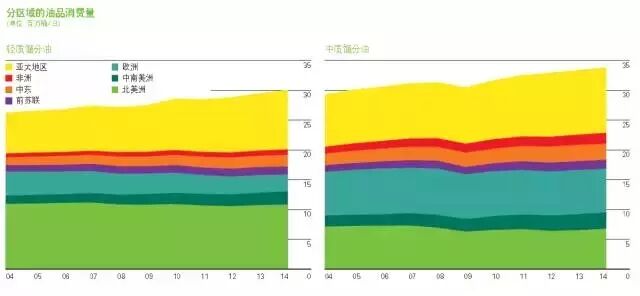 2014年全球石油消费42.1亿吨,较2013增长0.8%,增幅显著下降。非经合组织国家再次贡献了全球消费的净增长部分。OECD国家的消费下降1.2%,是过去9年第8次下降。