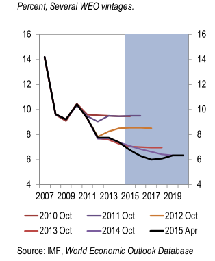 图 5 IMF《全球经济展望》对中国GDP增速预测的变化