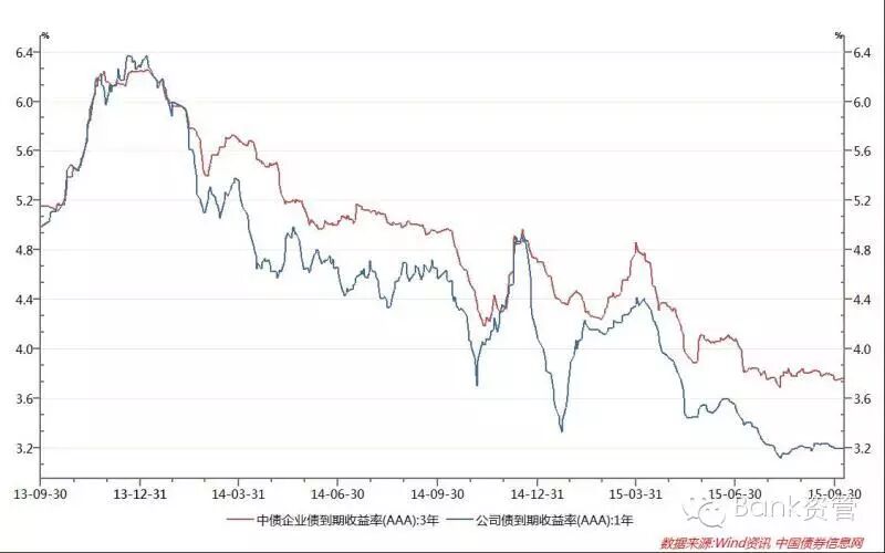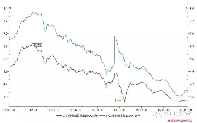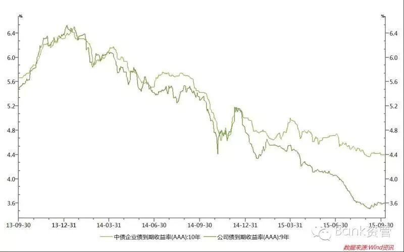 图4:长期限企业债与公司债到期收益率走势同时,由于交易所债券在质押式回购方面相对便捷,使其成为加杠杆操作的首要选择,公司债需求增加,加剧了同期限不同信用级别公司债信用利差的收窄(见图5)。3、长久期资产供不应求,收益率下降明显