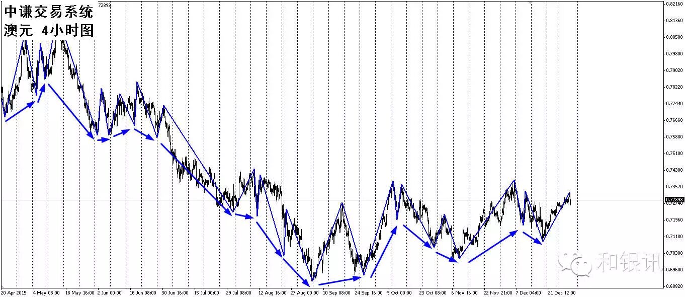 分析:上周市场震荡,周四高点0.7327,周二低点0.7244,全周振动83点,与上周分析对比高点误差27个点,低点误差84个点,方向分析正确。根据中谦交易系统分析,长线层面市场有望出现转势向上的趋势。上周市场震荡上行,但上升的能量明显不足。短期内市场有可能维持箱体震荡为主。本周新年假期结束,交投相对活跃,市场可能继续震荡偏下,高点0.7350,低点0.7200,振动约150点。