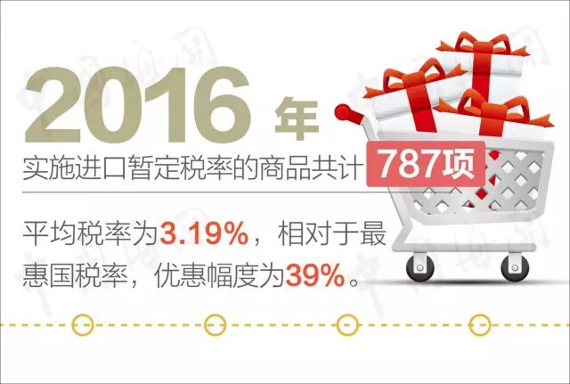 2016年共实施15个优惠贸易协定项下的协定税率,其中7个协定项下的协定税率比2015年进一步降低,中国-韩国自贸协定和中国-澳大利亚自贸协定将实施第二次降税。