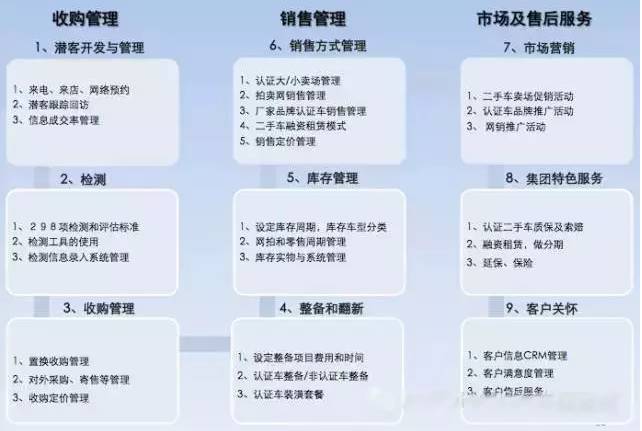 因此,经销商集团只有加强重视二手车业务的发展及培育,才能在未来的竞争中立于不败之地。那么,做为一个具有多品牌、多网络布点的经销商集团,怎么来管理二手车业务?如何提升呢?下面我们从五个方面来重点讨论。